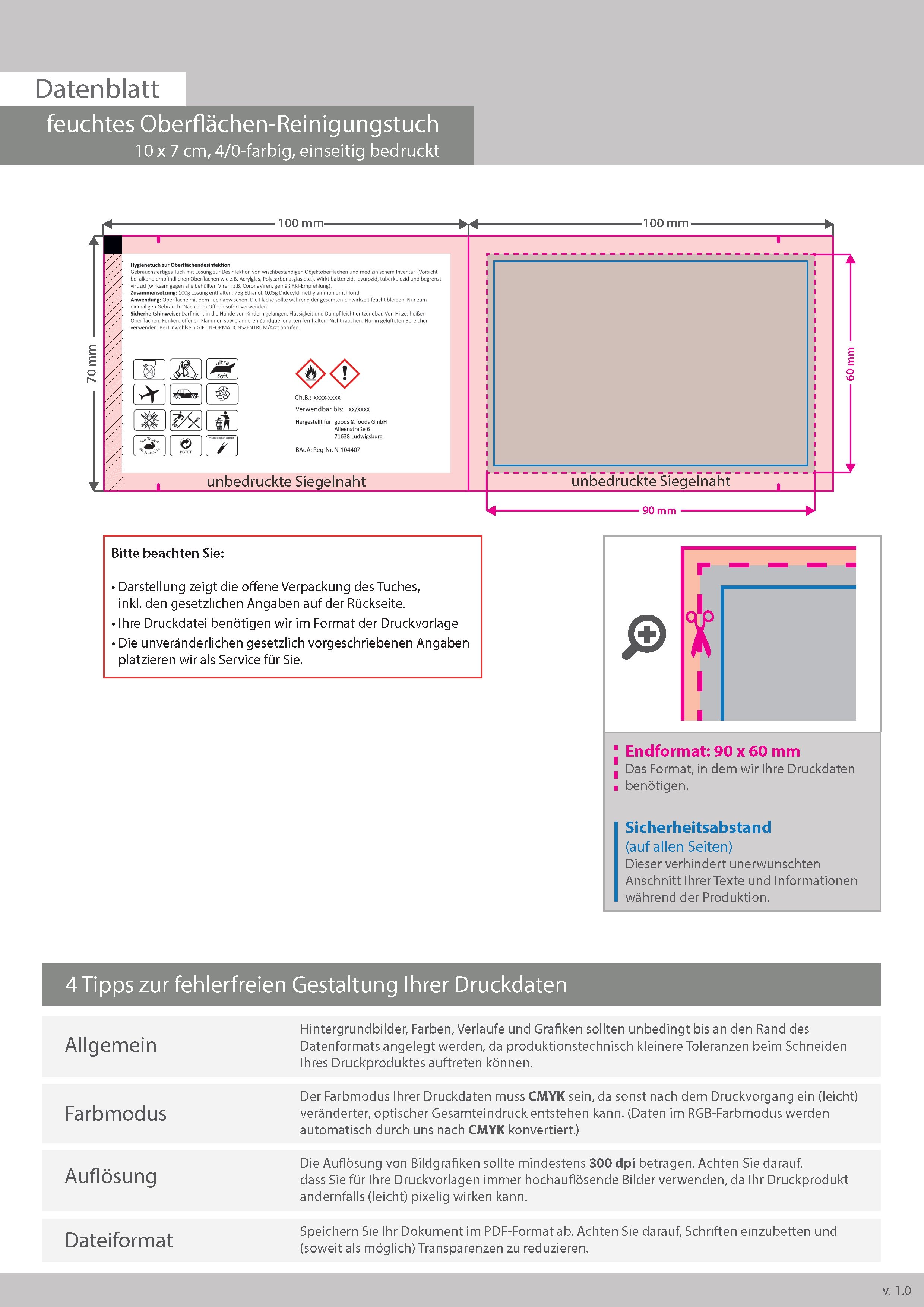 Feuchtes Oberflächen-Reinigungstuch, 10 x 7 cm, 4/0-farbig einseitig bedruckt