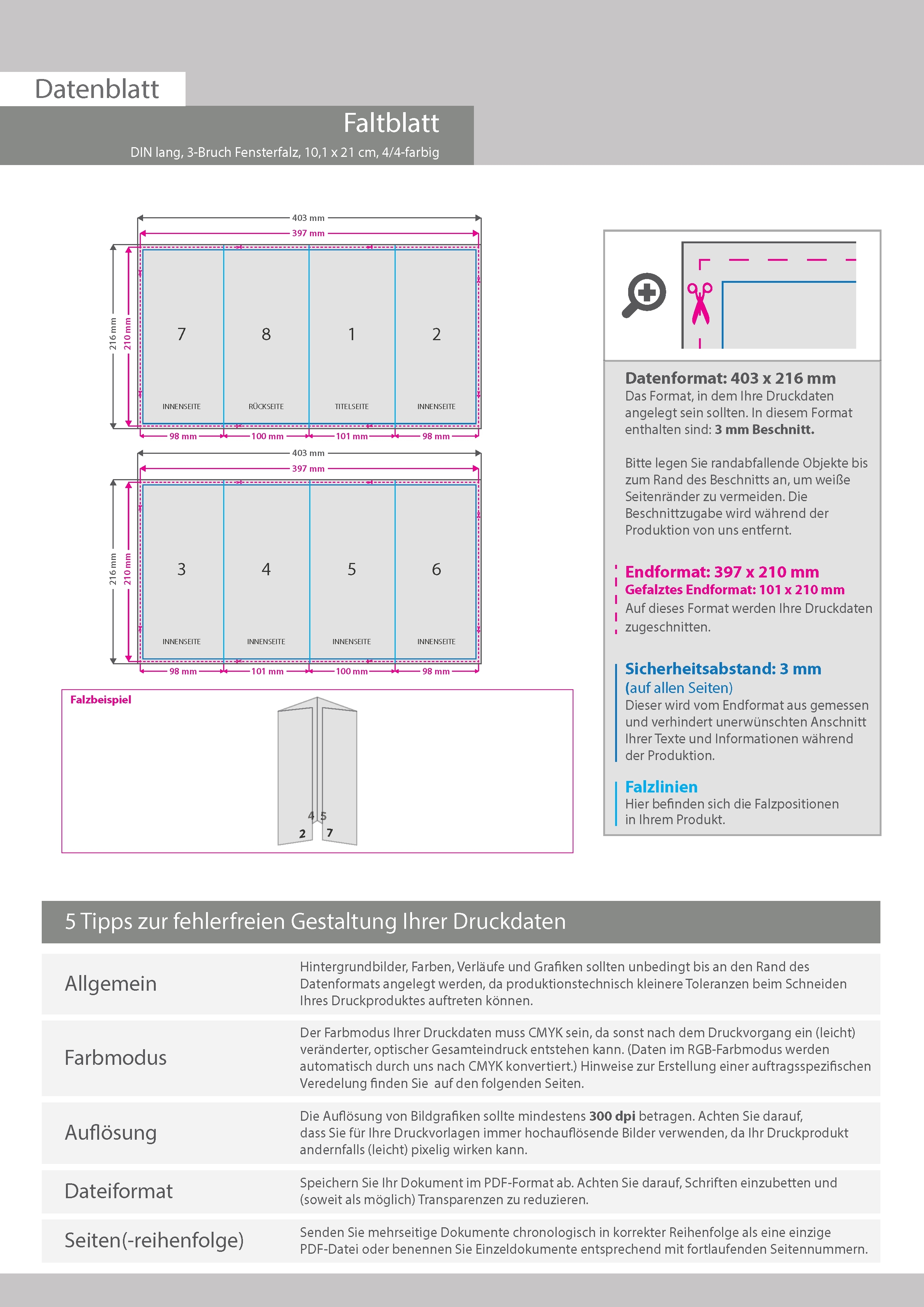 Hochglanz-UV-Lack Faltblatt, gefalzt auf DIN lang, vertikaler 3-bruch Fensterfalz, 8-seitig