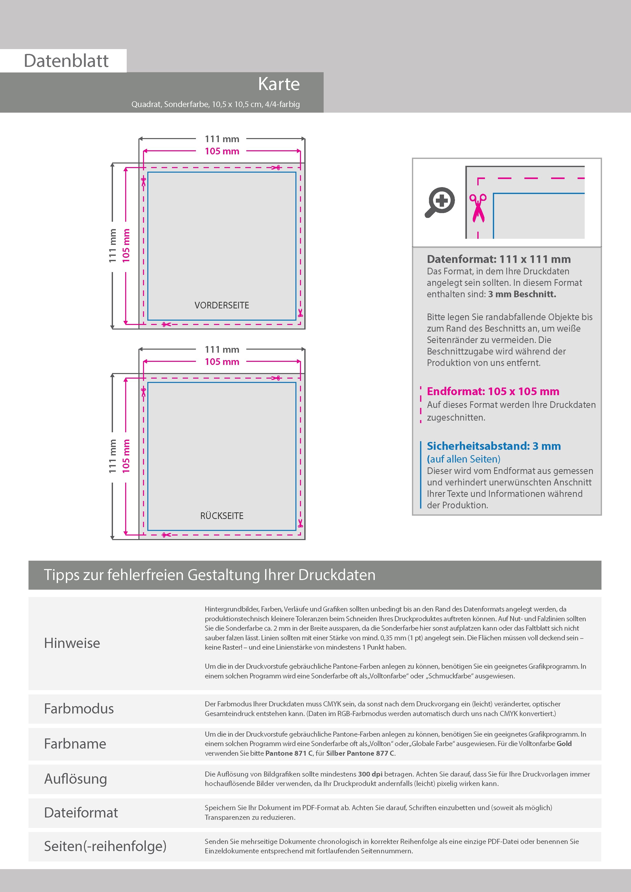 Einladungskarte 105 x 105 mm 4/4 farbig + Sonderfarbe Silber